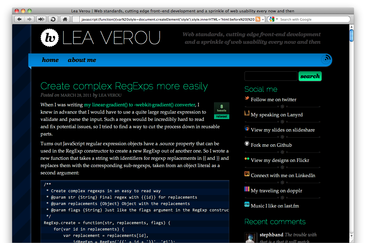 I recently saw Paul Irish’s jQuery invert page plugin. It inverts every color on a webpage including images or CSS. This reminded me of the invert color keyword that’s allowed on outlines (and sadly only supported by Opera and IE9+). So I wondered how it could be exploited to achieve the same effect through CSS alone. Turned out to be quite simple actually: