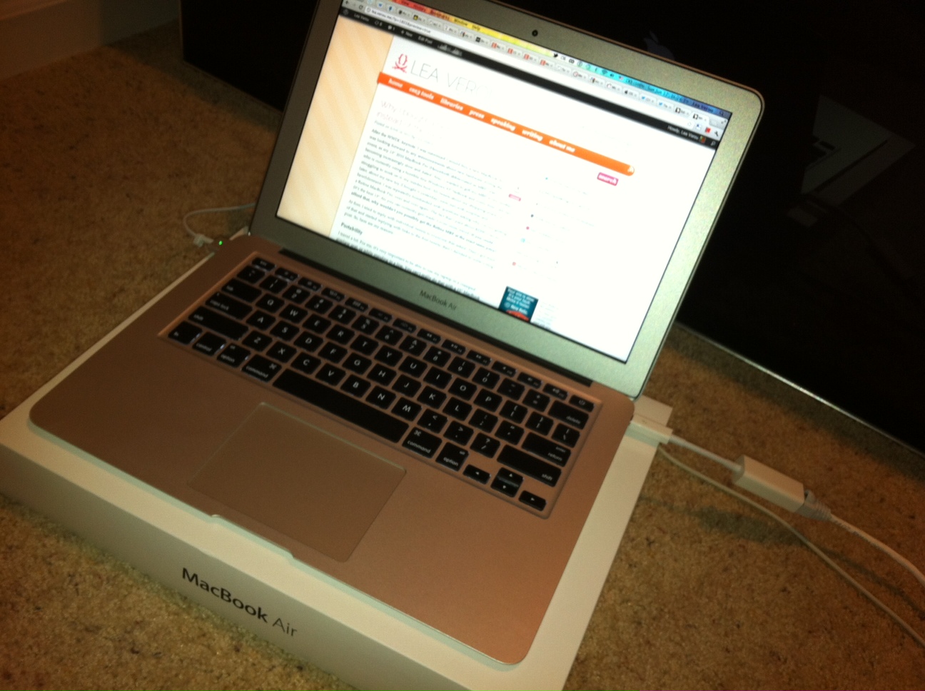 When I first went to the Apple Store to buy the MacBook Air, I saw the new Retina display. I even managed to use it a bit, despite the swarm of fellow geeks nerdgasming uncontrollably around it. I won’t lie: I was tempted at first. The display is very crisp indeed, although the difference between icons that were not updated for the Retina is quite obvious, especially next to their accompanying text (which is always crisp, since text is vector-based). I started being unsure about my decision, as Nicole Sullivan can attest (she was with me). And then it dawned on me: Hey, I should see the MacBook I was planning to buy in person too. Maybe its screen is also quite crisp. Maybe the difference won’t even be that noticeable. I was right: My simple, untrained eyes could not really tell the difference. MacBook Airs have a decently crisp screen. Of course, if you put them next to each other, I’d imagine the difference would be fairly obvious. But who does that?