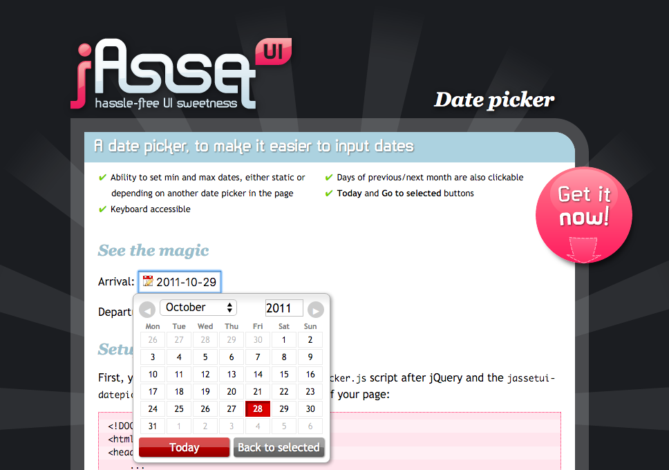 Fun fact: I learned JavaScript back then by writing my own library, called jAsset. I had not heard of jQuery when I started it in 2007, so I had even coded my own selector engine! (Anyone remember slickspeed?) jAssset had plenty of nice helper functions, its own UI library and a cool logo. I had even started to make a website for its UI components, seen on the right.