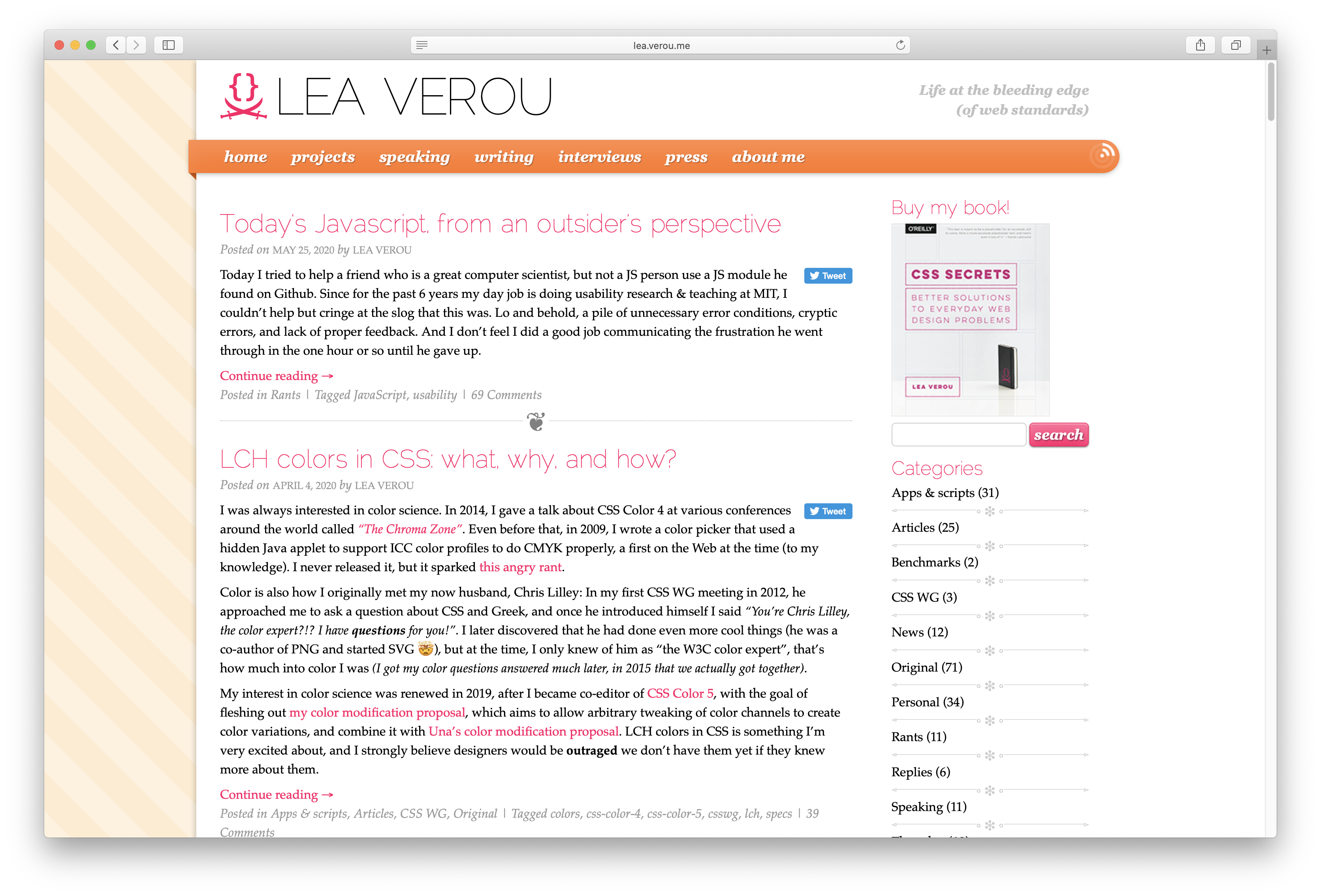 In the end, I kept the things I liked about it and it certainly still looks a lot like Twenty Twenty, but I think I’ve made enough tweaks that it’s also very Lea. And of course there are animated conic gradients in it, because duh. 😂