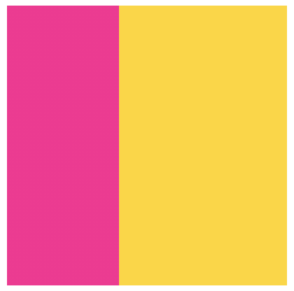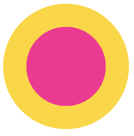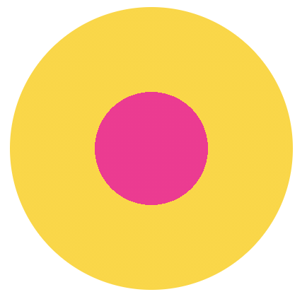 Why is that? Let r be the radius of the yellow circle. As we know from middle school, the area of the entire circle is π_r_², so the area of the yellow ring is π_r_² - (area of pink circle). The area of the pink circle is π(0.4_r_)² = 0.16π_r_². Therefore, the area of the yellow ring is π_r_² - 0.16π_r_² = 0.84π_r_² and their relative ratio is 0.16π_r_² / 0.84π_r_² = 0.16 / 0.84 ≅ 0.19 which is a far cry from the 40/60 (≅ 0.67) we were looking for!